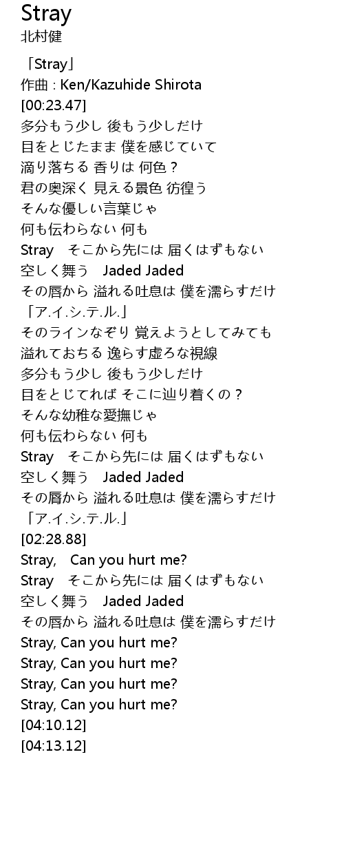 | [03:53.81] | Stray, Can you hurt me? |