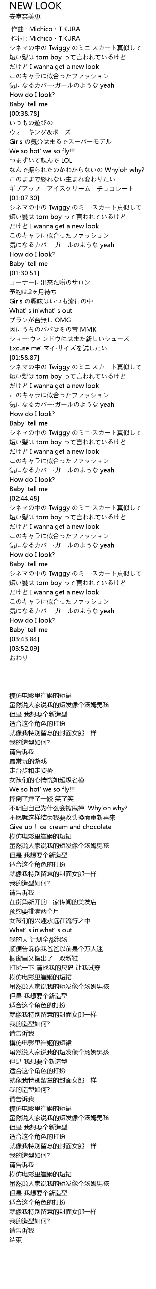| [03:21.36] | シネマの中の Twiggy のミニ·スカート真似して |