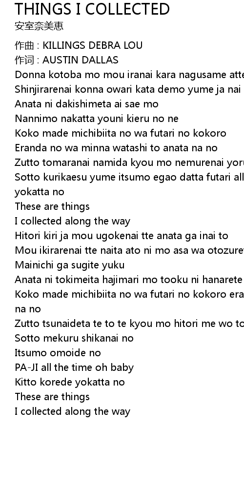 | Sotto kurikaesu yume itsumo egao datta futari all the time oh baby dakedo korede yokatta no | |