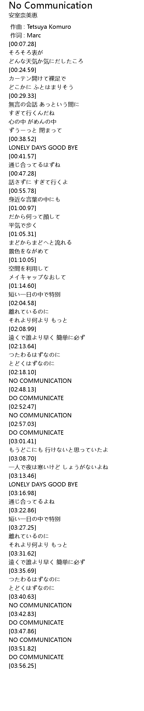 | [00:00.00] | 作曲 : Tetsuya Komuro |