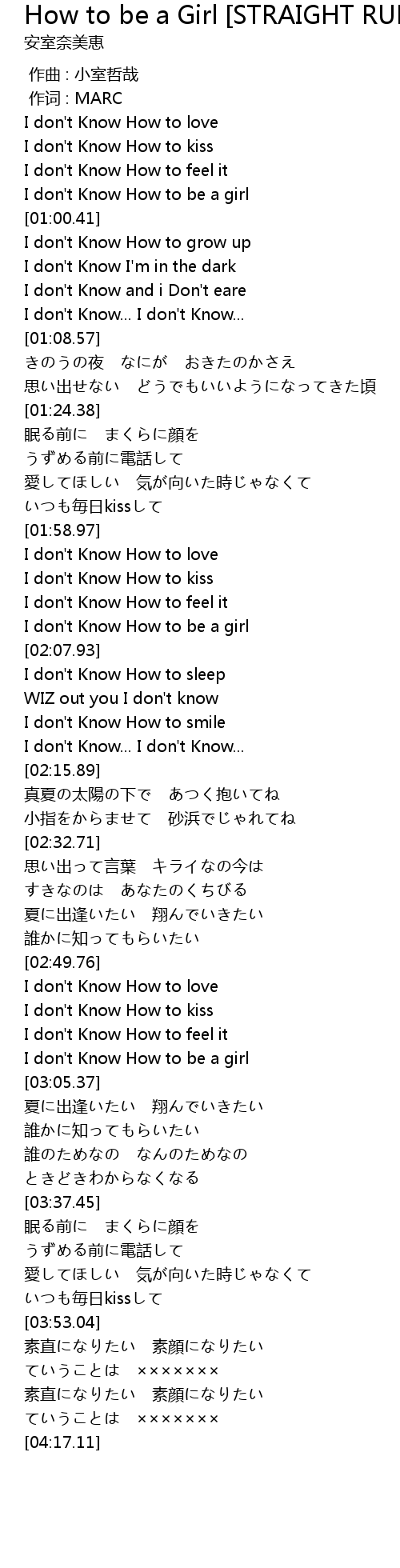 | Song | How to be a Girl [STRAIGHT RUN] |
