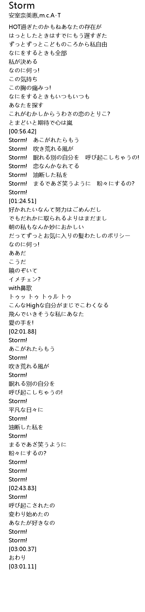 | [00:59.99] | Storm! 吹き荒れる風が |