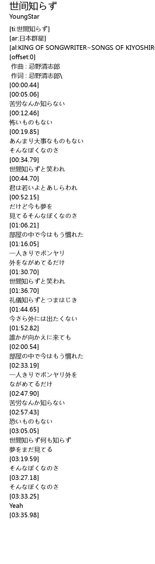 | [00:00.00] | 作曲 : 忌野清志郎 |