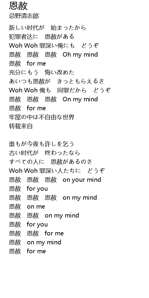 | 恩赦 恩赦 恩赦 on your mind | |