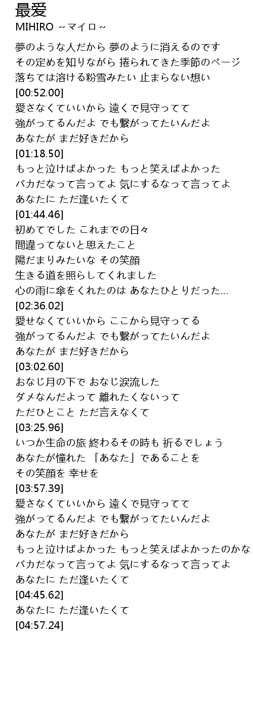 | [01:54.72] | 初めてでした これまでの日々 間違ってないと思えたこと |