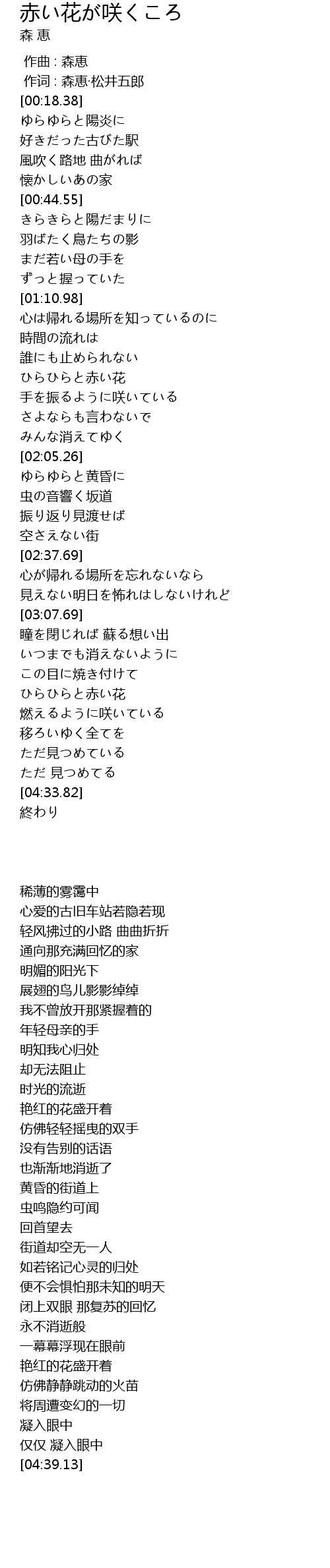 | [00:01.00] | 作词 : 森恵·松井五郎 |