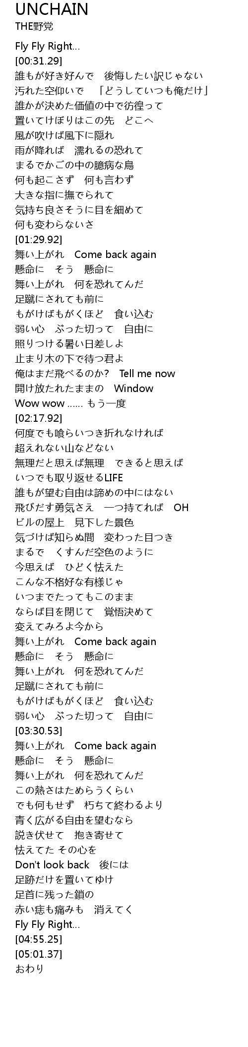 | [04:00.19] | 舞い上がれ 何を恐れてんだ |