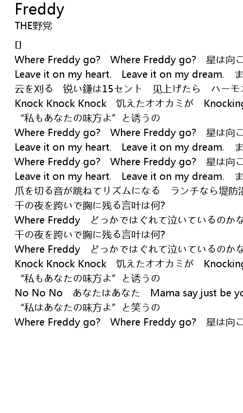 | Where Freddy go? Where Freddy go? 星は向こう 窗を开けっこ |