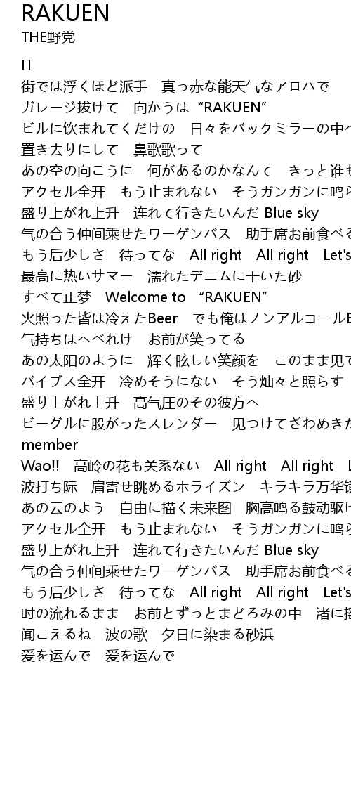 | 盛り上がれ上升 连れて行きたいんだ Blue sky | |