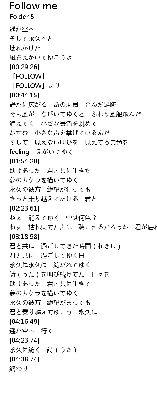 | [04:30.64] | 永久に紡ぐ 詩(うた) |
