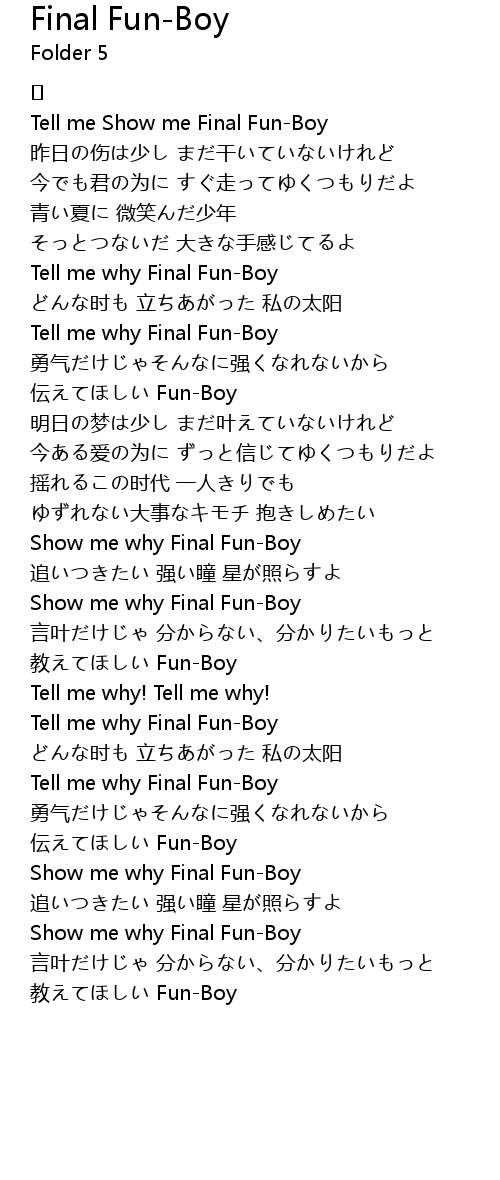 | Tell me why Final Fun-Boy | |