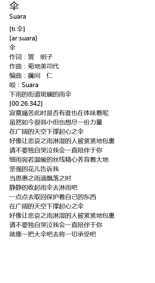 | [02:58.155] | 在广阔的天空下撑起心之伞 |
