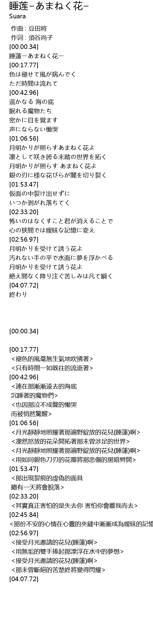 | [00:05.92] | 睡蓮ーあまねく花ー |