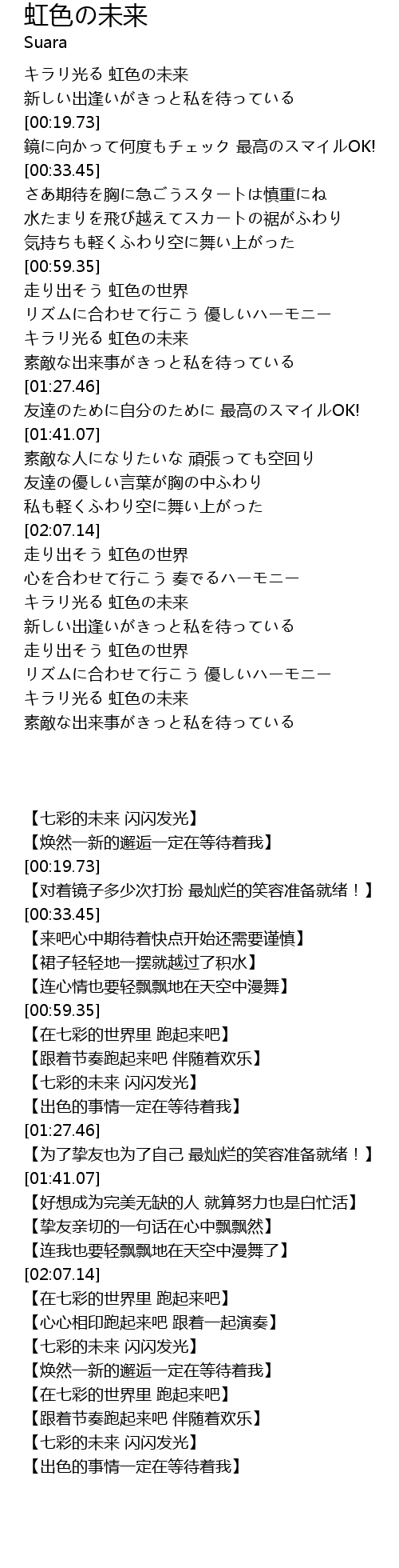 | [02:19.15] | キラリ光る 虹色の未来 |