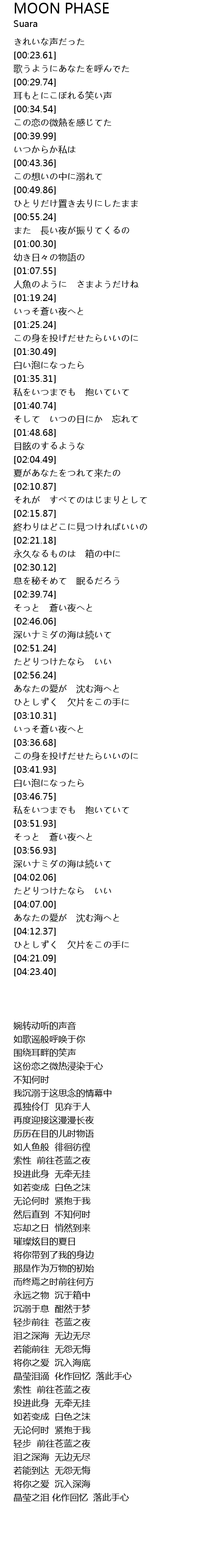 | [01:11.18] | 人魚のように さまようだけね |