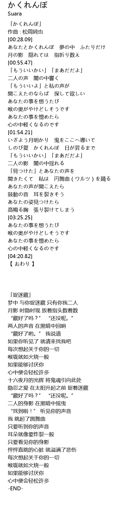 | [02:30.04] | 「もういいかい」「まあだだよ」 |