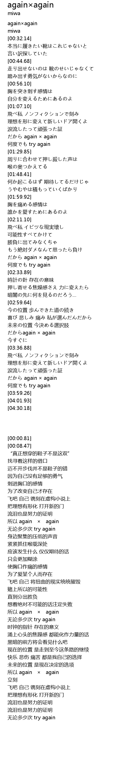 | [00:00.81] | again×again |