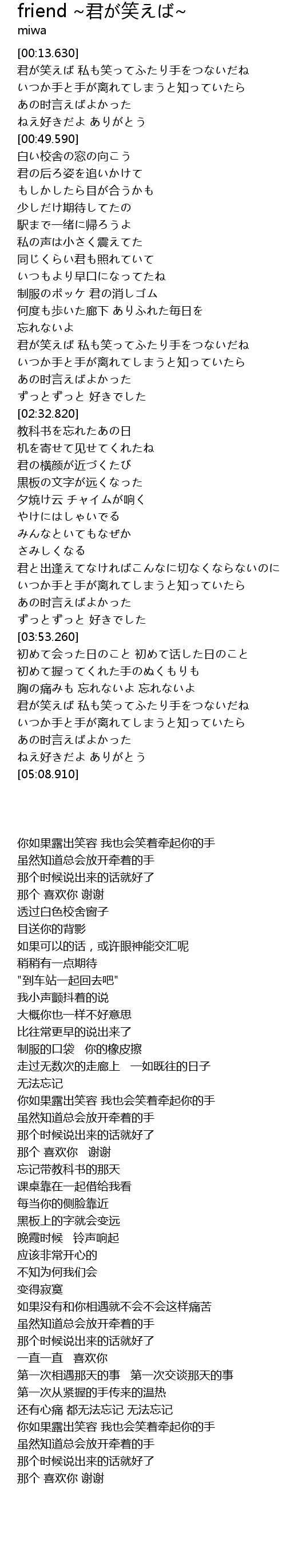 | [04:33.780] | 君が笑えば 私も笑ってふたり手をつないだね |