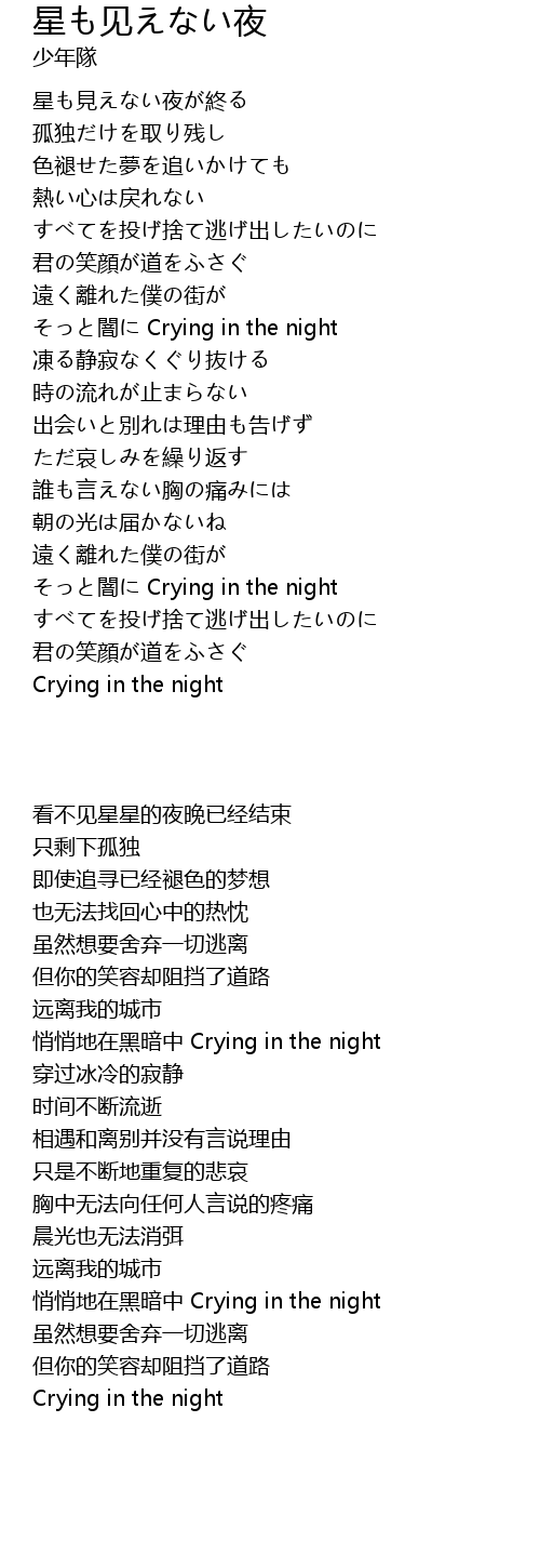| [02:47.96] | 凍る静寂なくぐり抜ける |