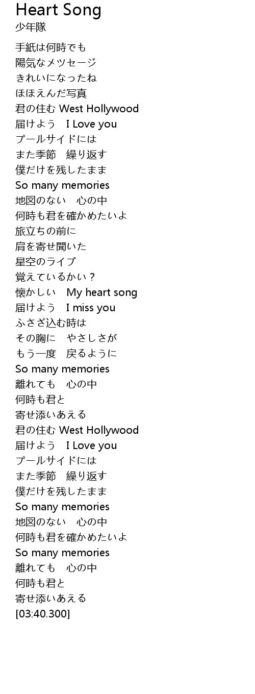 | [01:55.640] | 懐かしい My heart song |