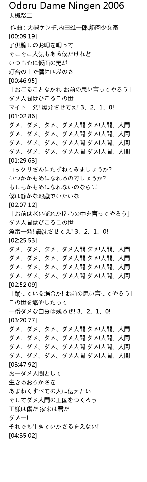 | [03:41.57] | ダメ、ダメ、ダメ、ダメ人間 ダメ!人間、人間 |