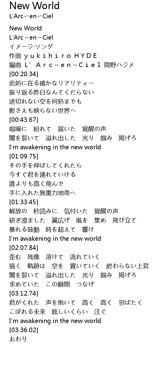 | [03:32.39] | I' m awakening in the new world |