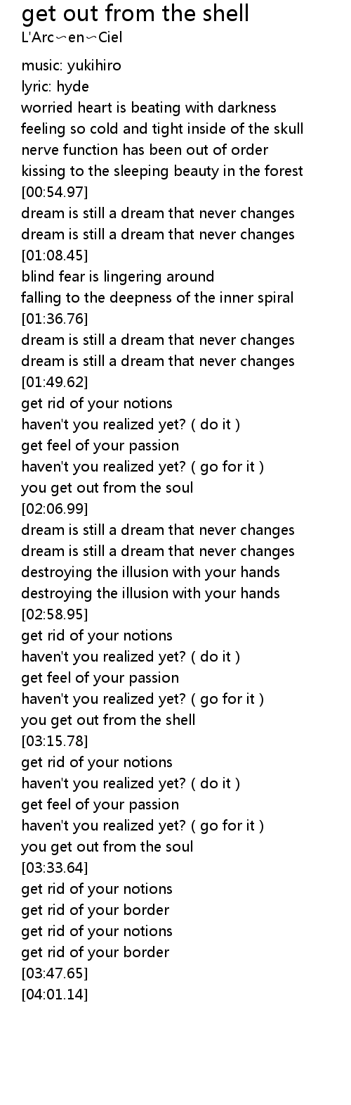 | [03:03.73] | haven't you realized yet?(do it) |