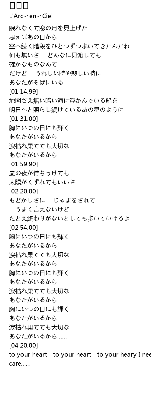 | [04:01.00] | 涙枯れ果てても大切な |