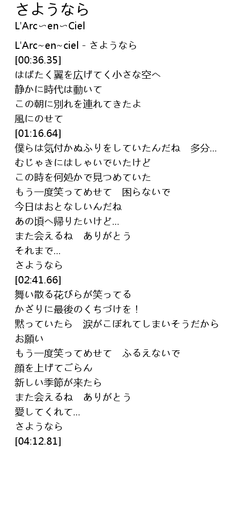 | [00:01.35] | L'Arc~en~ciel - さようなら |