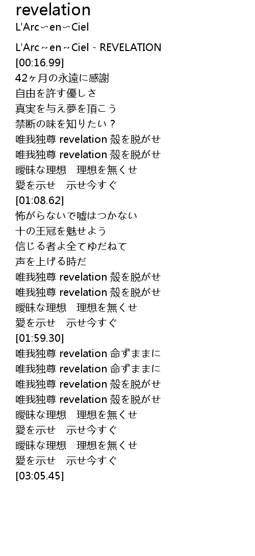 | [00:01.99] | L'Arc~en~Ciel - REVELATION |