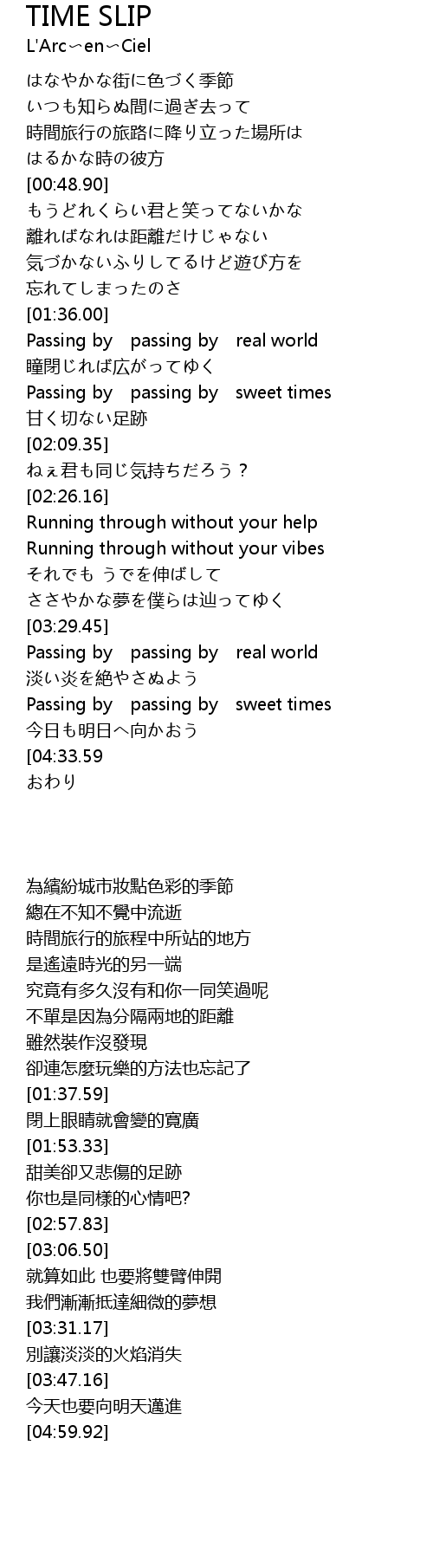 | [03:31.17] | Passing by passing by real world |