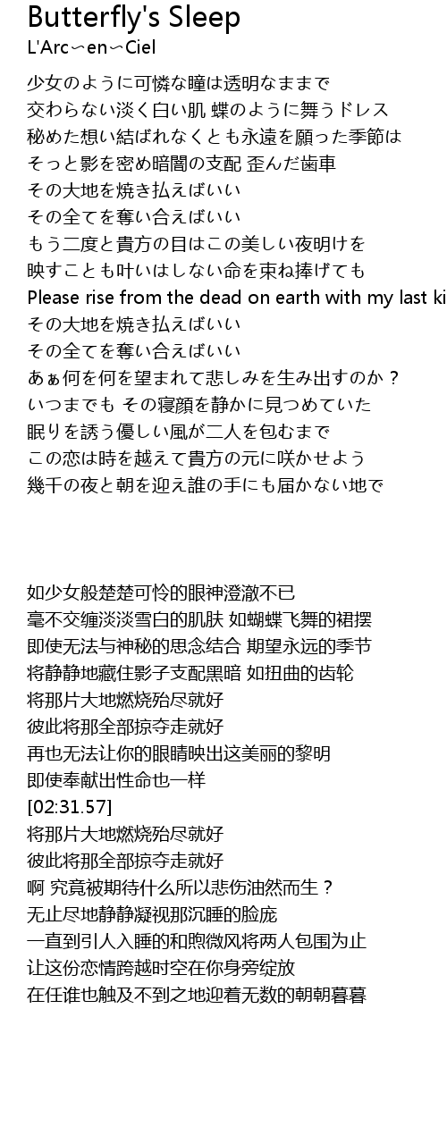 | [02:31.57] | Please rise from the dead on earth with my last kiss |