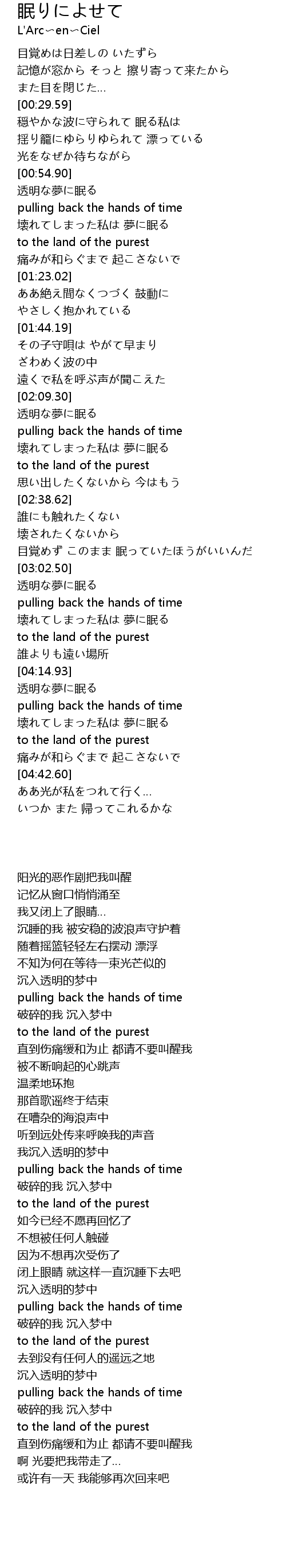 | [04:36.50] | 痛みが和らぐまで 起こさないで |