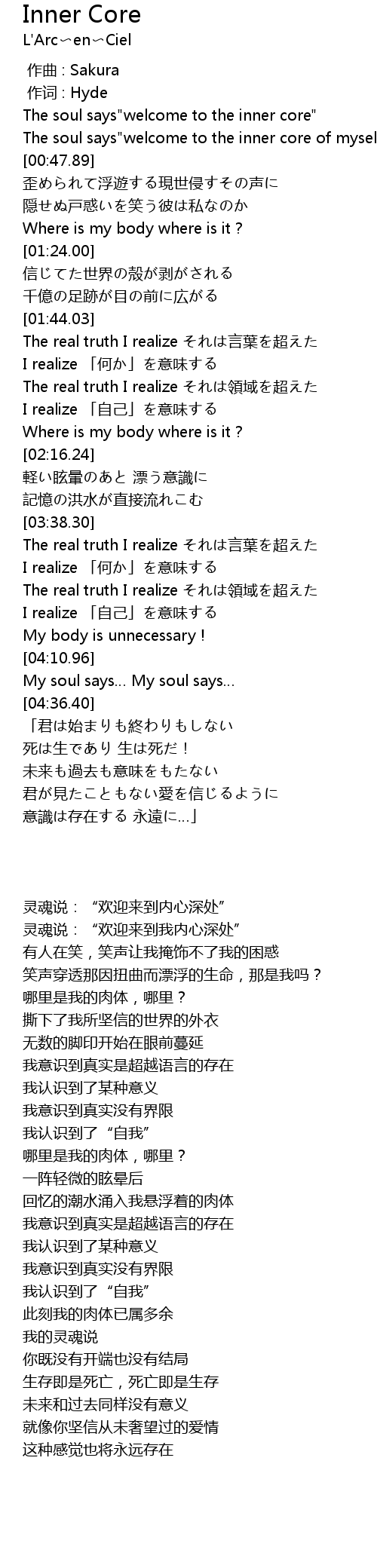 | [00:26.40] | The soul says"welcome to the inner core" |