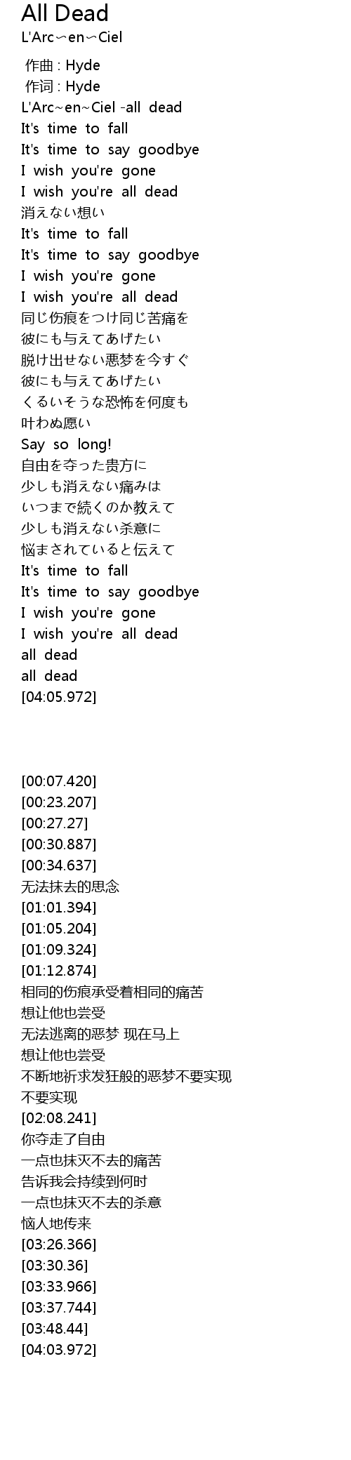 | [00:07.420] | L'Arc~en~Ciel -all dead |