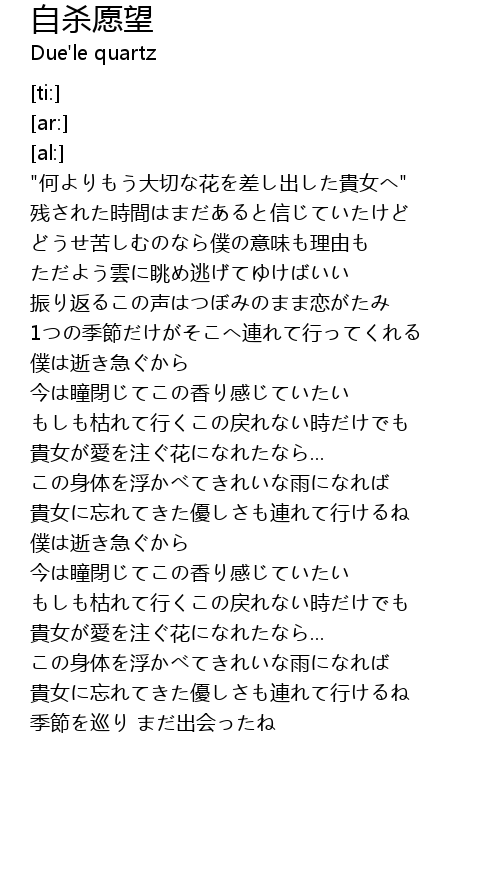 | [02:31.37] | 貴女が愛を注ぐ花になれたなら... |