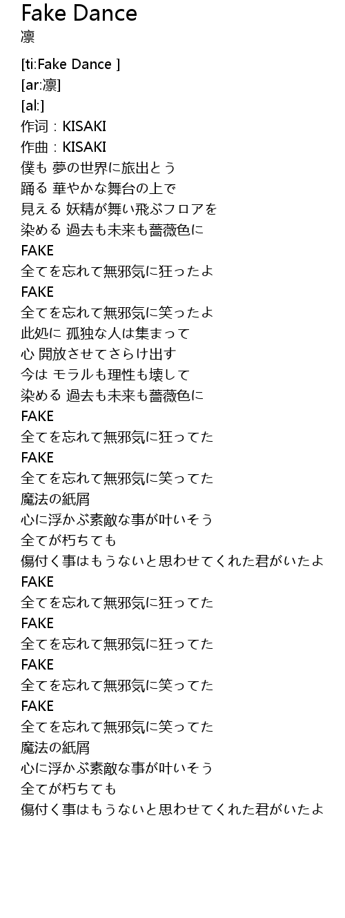 | [03:15.23] | 全てを忘れて無邪気に狂ってた |