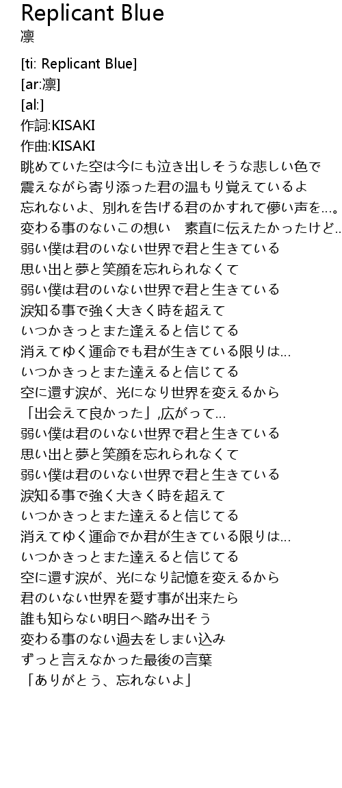 | [01:41.86] | 弱い僕は君のいない世界で君と生きている |