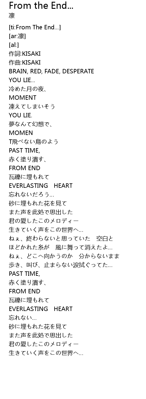 | [01:07.03] | BRAIN, RED, FADE, DESPERATE |