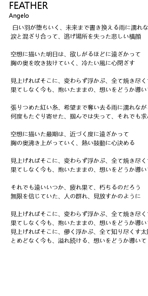 | 白い羽が堕ちいく、未来まで書き換える雨に濡れながら | |