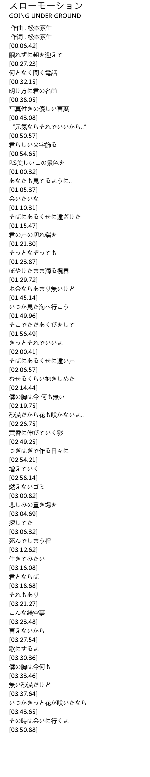 | [00:01.00] | 作词 : 松本素生 |