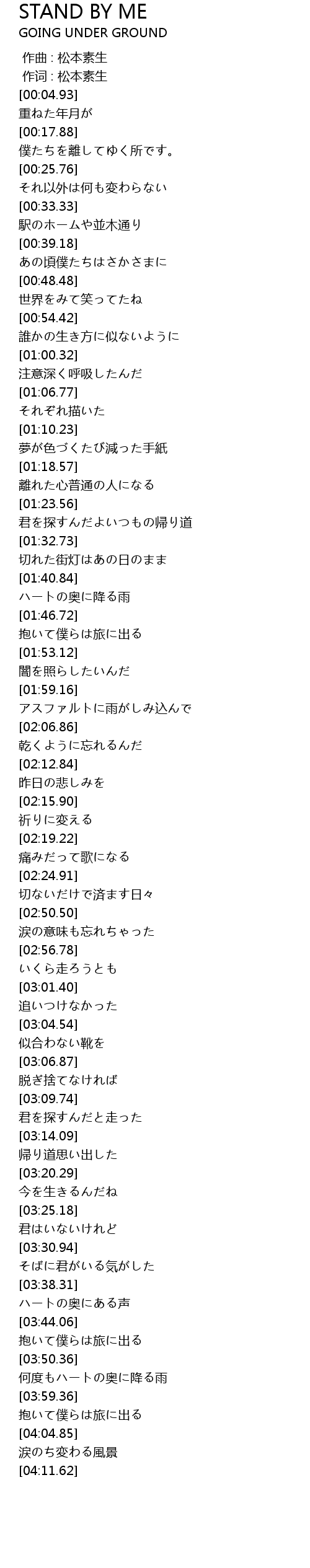 | [04:02.35] | 抱いて僕らは旅に出る |