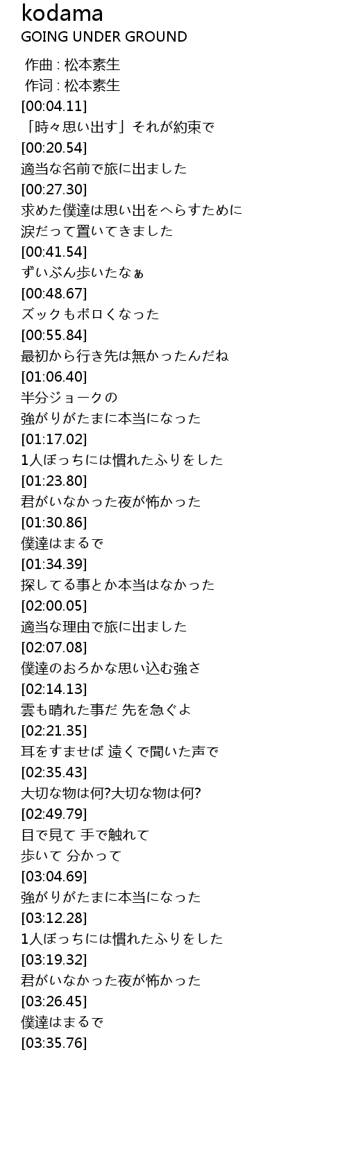 | [00:01.00] | 作词 : 松本素生 |
