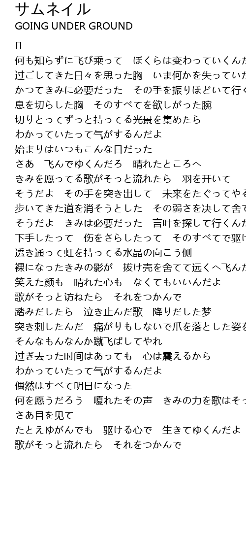 | 踏みだしたら 泣き止んだ歌 降りだした梦 | |