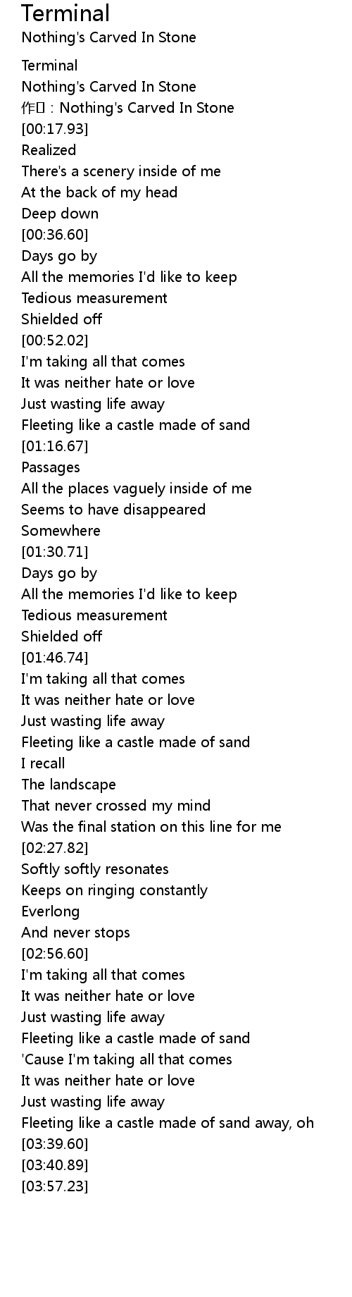 | [03:16.68] | Fleeting like a castle made of sand |