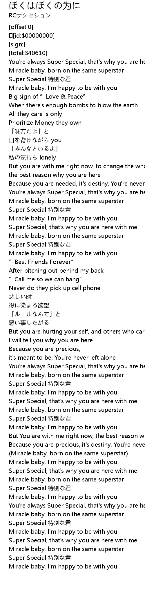 | [02:51.113] | You' re always Super Special, that' s why you are here with me |