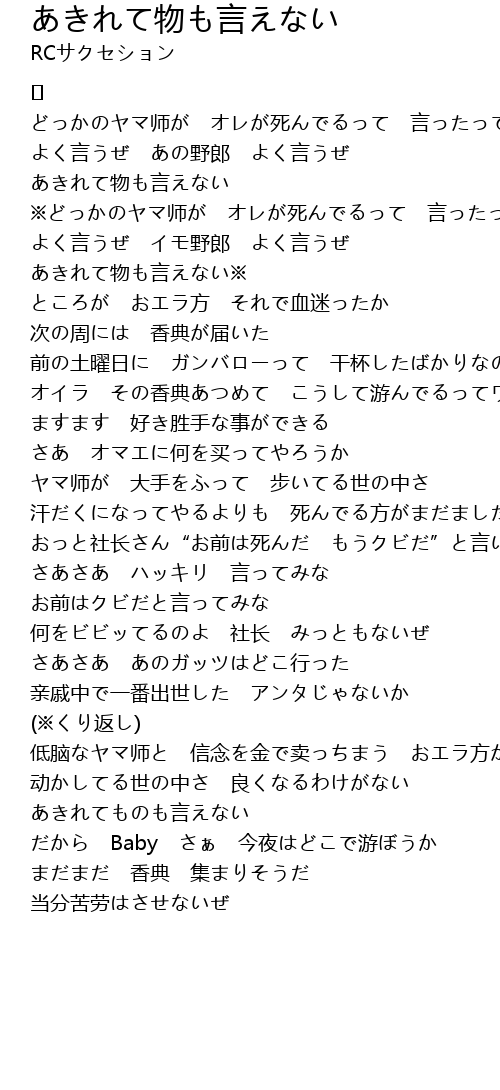 | Song | あきれて物も言えない |