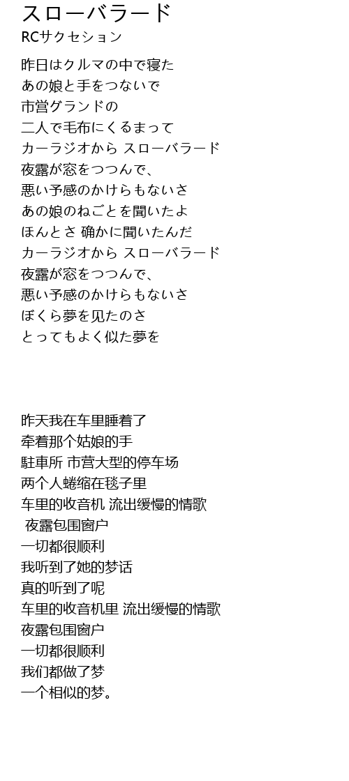 | [00:23.44] | 昨日はクルマの中で寝た |