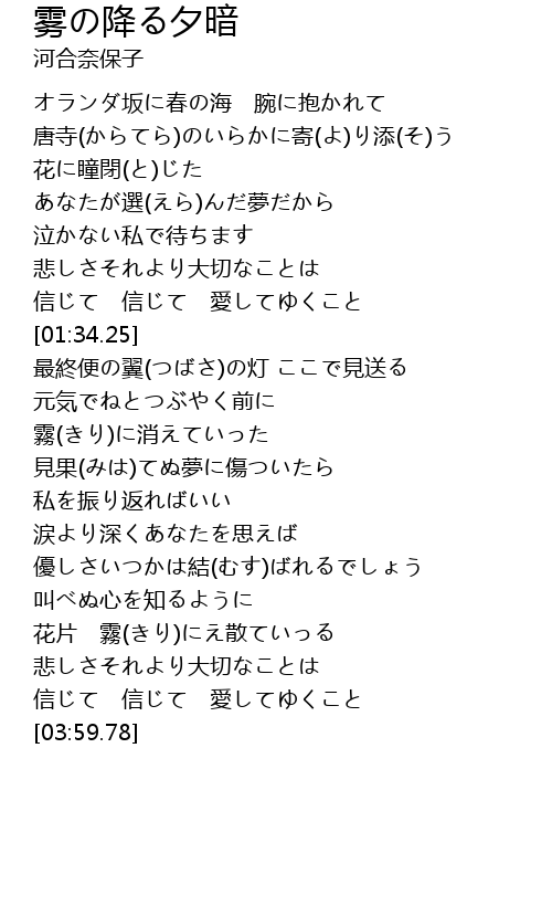 | [00:28.17] | オランダ坂に春の海 腕に抱かれて |