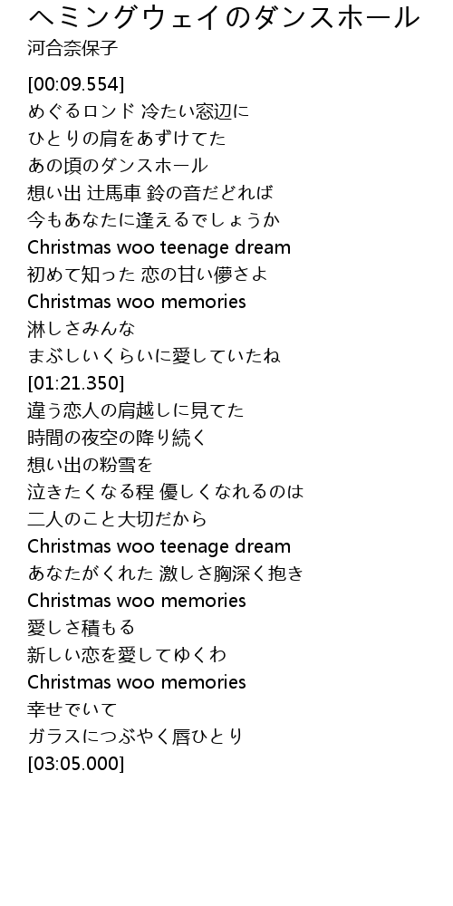 | [01:08.400] | Christmas woo memories |